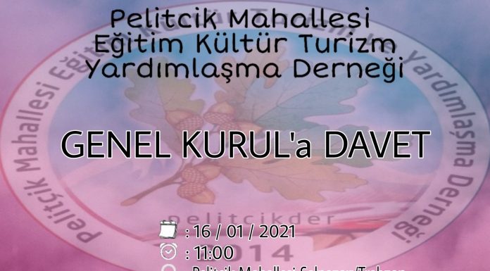 ŞALPAZARI İLÇESİ PELİTÇİK MAHALLESİ EĞİTİM KÜLTÜR TURİZM VE YARDIMLAŞMA DERNEĞİ GENEL KURUL TOPLANTISI YAPACAKTIR